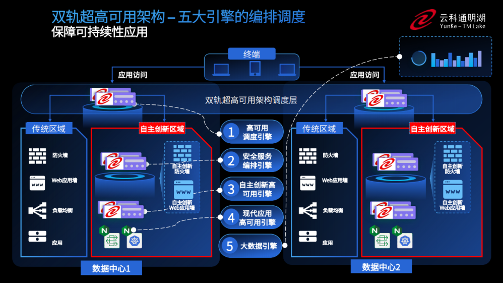 为实现双轨超高可用架构信创区和非信创区的跨域协同,实现信创区域和非信创区域的平滑过渡,太阳成集团tyc539官网通过五大引擎实现多层次的应用可持续性。